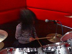 We rehearsed today. ’Cause we’ll play at Count Down Japan festival on new years eve. I tried to play the drums at a break. 本日、リハやった。大晦日の、カウントダウンジャパンに出るから。合間の時間にドラムを叩いてみた。 |