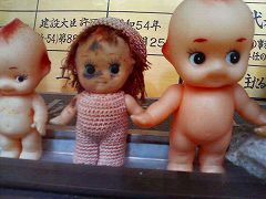 きゅーぴーさん。 ところで。キューピーさんに毛糸で服を編んで着せてあるのって、とってもかわいいと思う。なんだか心温まるにゃー。 |
