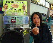 ローチェスターの後はと言うと、もうめちゃ忙しかった!睡眠時間三時間の日々。 三月四日、ローチェスターを朝七時に出発、バンに乗り込み七時間かけてNYへ。Fearless TVのスタジオにて三曲収録。ライブ会場に入りサウンドチェック。夕食食べて宿に一旦入り一休みしてライブ本番が深夜12時から始まった。この日も嬉しい事に会場は満杯、楽しくライブ終了し、宿に帰って寝たのが朝五時。 次の日、朝9時出発、WFMUのラジオ局へ。6曲演奏し、会場に移動してサウンドチェック。夕食食べて宿に戻り一休みしてライブ。なんとショータイムは午前1時から!だって土曜の晩だもんね。ライブはまたまた大盛況、わー!片付けて帰ったら朝4時半。 そんな訳で次の日はオフだったので午後1時まで 寝てた。その後は洗濯2杯。みんなリフレッシュしたよ。 今日はみんな元気にワシントンDCへGo!途中ドライブインでベアーズ当選者お土産のおまけにプレス式記念コインを作ったよ。 March 6, 2005 Very very busy after leaving Rochester. Three hour sleep everyday then. On March 4, left Rochester at seven in the morning, got into a van and drove for seven hours to NY. Recorded three songs at Fearless TV studio. Got to the venue and checked the sound. After dinner, got some rest at a hotel and started our live gig from 12:00 midnight. Happy to know the venue was full that day also. After the enjoyable live gig, went to sleep at five in the morning. Next day left a hotel at nine in the morning to appear on WFMU radio station, and performed six songs. Then moved to the venue and finished sound check. After dinner got back to the hotel and back to the venue again for our gig. The show started 1:00 a.m.! It’s Saturday night! The gig there was a great success again. Got back to the hotel at 4:30 a.m. Today is off. Slept till 1:00 p.m. Did our washing. It refreshed us. Today we headed to Washington D.C.! Made souvenir coins for the prize winners of the Bears, a venue in Osaka, at a drive-in on the way to the D.C. |