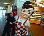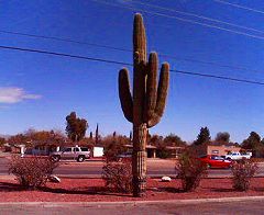 San Diegoのライブもノリノリだった。アンコールの一番最後にギターケーブルが抜けたけど。(;^_^A 今日は少し早起きしてホテル近くのスーパー、TARGETへ。 ここは衣類が充実している。方向音痴な為、逆に行きかけたりしたが何とか到達。時間があまりなかったので、体育館よりもデカい店内を大急ぎで見て回った。買物無事終了、また道がわからなくなってキョロキョロしつつもホテルに帰着。 その後ブランチを日本食レストランで食べた。私が注文したのはなんとモダン焼き! そして2時間ぐらいでSanta Anaに到着。今サウンドチェックが終わった所。えっちゃん、あっちゃん、わたし、みんな元気デス。ライブは今日を含めてあと9回。がんばるぞー。 (写真はアリゾナからサンディエゴへ行く途中のドライブインにて発見した巨大サボテン) March 24, 2005 The gig in San Diego was also great though a guitar cable was came off from the amp at the last song.(;^_^A Got up much earlier today to go to supermarket, TARGET, near a hotel. There is many clothes in the store. I almost lost my way there because I have little sense of direction. Checked out the huge store, in a hurry as I had no time. Could enjoy shopping there. Lost my way again and got back to the hotel finally. And then I had brunch at a Japanese restaurant. Guess what I ordered. It’s “Modern-yaki”, a kind of Japanese pizza with soba noodle! Arrived in Santa Ana after two hour drive. We have just finished our sound check now. Etchan, Atchan and me all are fine! Nine live gigs left including today. We will do our best. This picture shows a gigantic cactus that we found at a drive in on the way to San Diego from Arizona. |