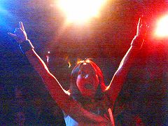 3月8日雪のち曇り。ワシントンDCからフィラデルフィアへ。 ライブ会場近くまで来たところで、我々のトレーラーが道路凍結の為滑って脱輪。足元つるつるの寒いなか、通り掛かりの人も加わってトレーラーを押してもらった。なんとか態勢を立て直し、会場入り。 ライブも無事終了。写真はステージから撮ったものっす。 ライブ中ずっと不法にビデオ撮ってる人が居て困ったー。(`´) March 8, 2005 Cloudy after snow. From D.C. to Philadelphia. One of tires of our trailer got out of joint after it slipped because the road was frozen near the venue. It was so cold and slippery, and passers-by and we gave our trailer a push. Anyway got ready to drive to the venue. Finished our gig here. This picture was taken from the stage. The trouble was that a person was recording videotape illegally. (` ‘) |