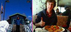 三月十日極寒のボストンを後にモントリオールへ。 山越え国境越えをした。車に置いていたペットボトルもカチコチに凍っていた。写真は国境近くニューハンプシャーの旅行案内センター前にて。もう一枚はツアークルーの一人ニックが骨つきチキンを食べている所。 無事モントリオールに到着。ボンジュール!そう、ここはフランス語圏。TV(MUCH MUSIC)のインタビューを受けた後、今日初めての食事をタイ料理店で食べた。 そして、ライブ本番。若い男の子を中心に昔からのナイフファンや女の子のお客さんも結構多い。ライブはこの上なく盛り上がりを見せ、モッシュが起きた。アンコールの声も止む事無く、ナイフコールも巻き起こった! March 10, 2005 Left very chilly Boston to Montreal. Went over a mountain and cross the border. Water pet bottles got frozen in the van. The picture was taken in front of a travel information center in New Hampshire close to the border. Another was taken when one of tour crew, Nick, was having chicken. Arrived in Montreal safely. Bonjour! Yes, French is spoken here. We took the first meal today at a Thai food restaurant after being interviewed with TV, MUCH MUSIC. There were large audience at the venue. The live gig there was so exciting than ever and was a “mosh”. We’re called back to the stage with many encores and Knife calls! |