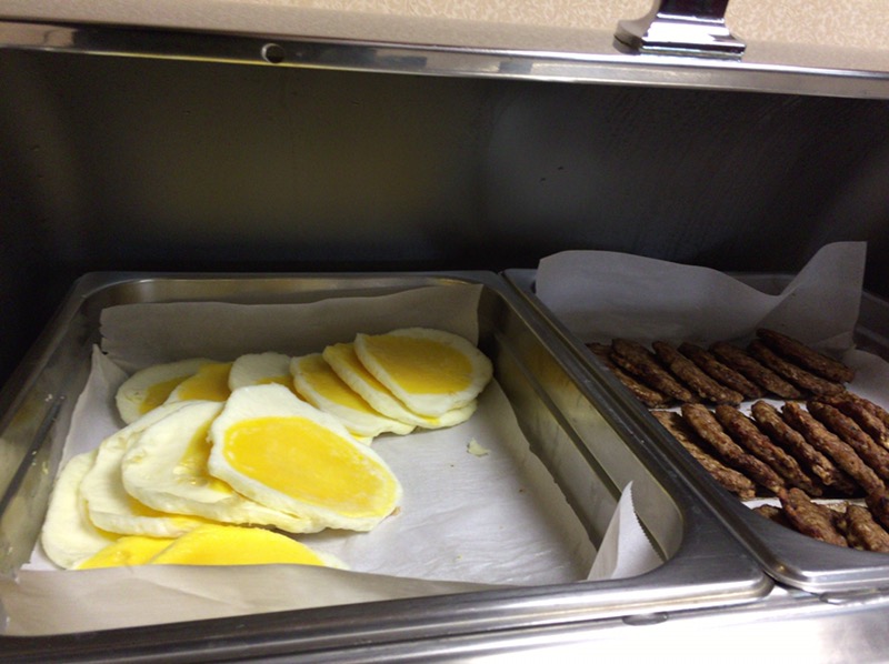 Sunny side up?? at the hotel diner. A little artificial.