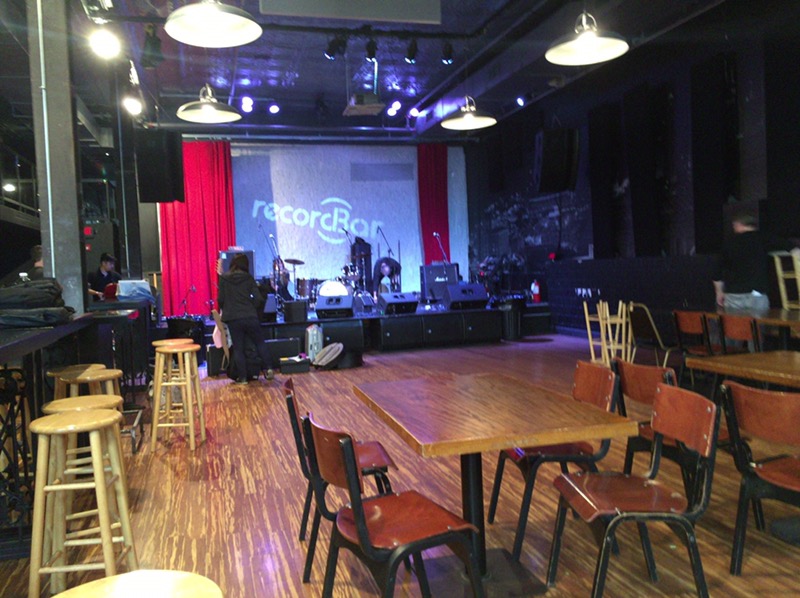 約4時間半で会場のカンザスシティー、The Record Barに到着。2つステージがあって、今日はイベントなので交互にバンドが演奏するそうです。こちら、メインステージ。