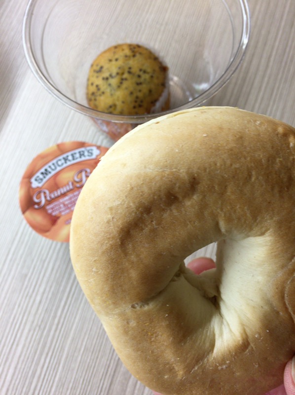 朝、ホテルの部屋で何か食べようかなと、シアトルから6日間持ち歩いていたパンを見たら裏にカビが生えていた!パンの袋にはbest by 10/17って書いてあるという事はあと2日は食べられるはずなんだけど。そもそも、ピーナッツクリーム入りのパンで、消費期限が8日間だなんてありえないと思うんだけど。