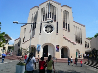 食事の後は、Baclaran教会を見学、24時間オープンしている教会。多くの人が時間関係なくお祈りにきているそうです。この日も人だらけ。教会の周りには神さんにささげるための人形や花輪を売っています。それ以外にも参拝客目当ての露店がたくさん。