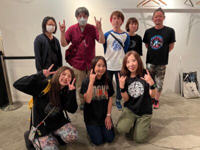 一旦、ホテルに帰って身支度をして、会場へ。いつものように搬入、サウンドチェック、グッズコーナーの設営を済ませていざ本番。ライブ前に記念撮影しました。